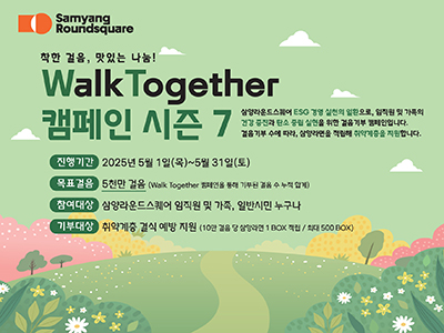 삼양식품과 삼양라운드스퀘어는 5월 1일부터 31일까지 걸음 기부 캠페인 ‘워크 투게더(Walk Together)’를 진행한다고 밝혔다.